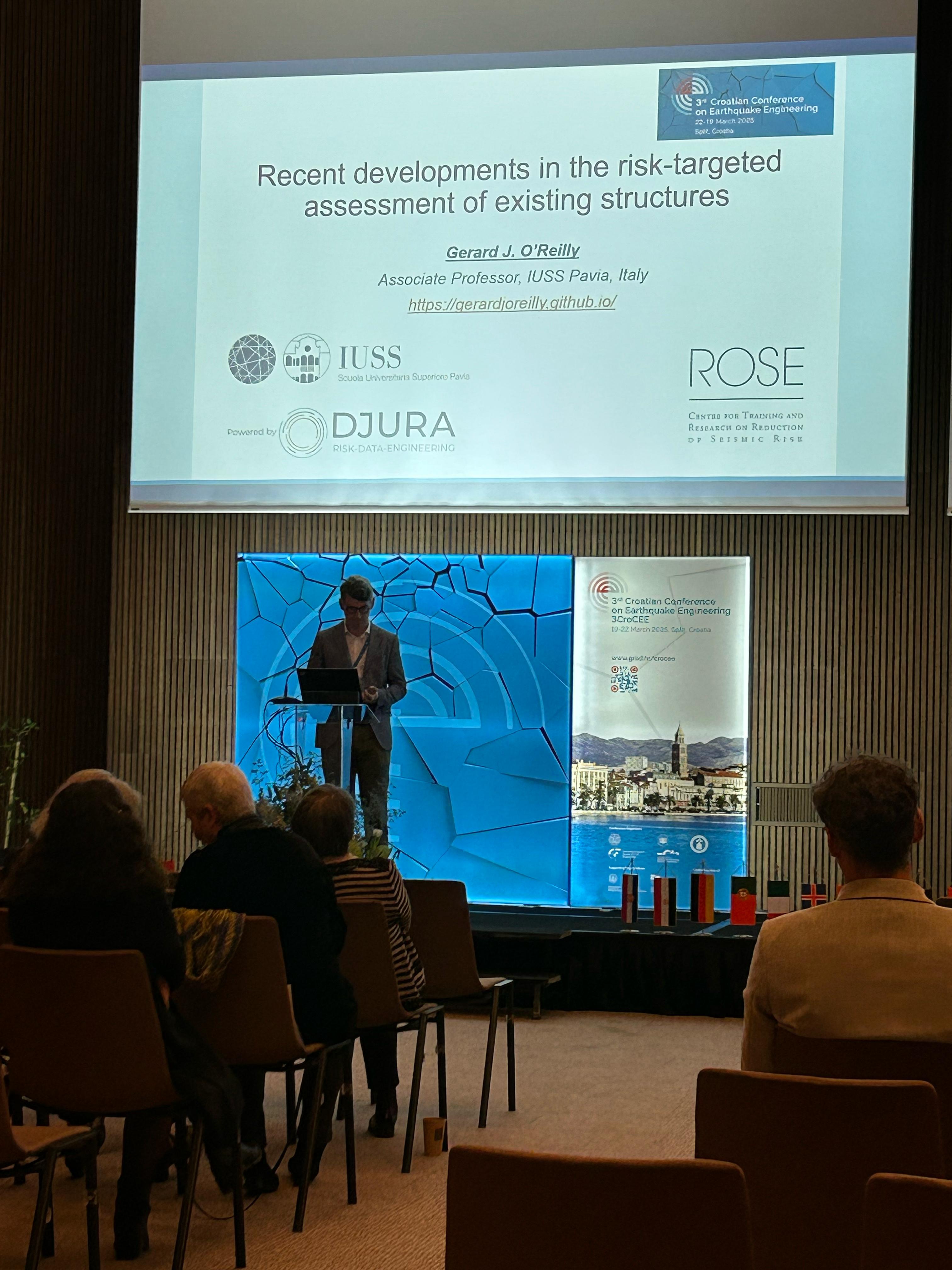 - 22/03/2025 - Gerard gave a presentation on "Recent developments in the risk-targeted assessment of existing structures" at the 3rd Croatian Conference on Earthquake Engineering in Split, Croatia to illustrate how recent research developments can be integrated to develop a more accurate but yet highly practical seismic risk classification rating scheme [Presentation]