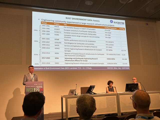 - 02/07/2024 - Gerard presented an overview of the Built Environment Data candidate service that will be soon presented as a candidate to EPOS during a side meeting at the WCEE. It is an important step for our research community to organise and consulate its data and knowledge within this framework and it is a privilege to be part of the coordinating team at the Eucentre Foundation. [Photo][Presentation]